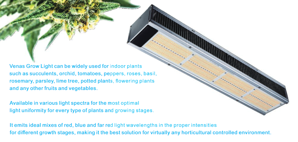 It emits ideal mixes of red, blue and far red light wavelengths with the proper intensities for different growth stages, making it the best solution for virtually any horticultural controlled environment.